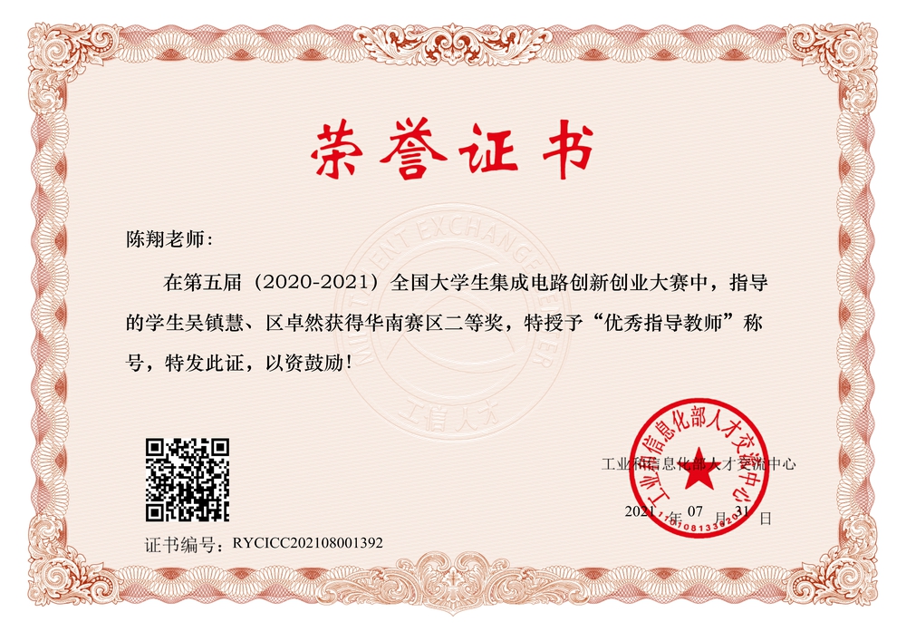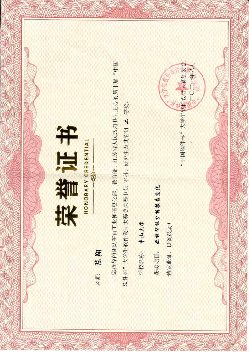 奖项:优秀指导奖(指导学生获得总决赛二等奖)